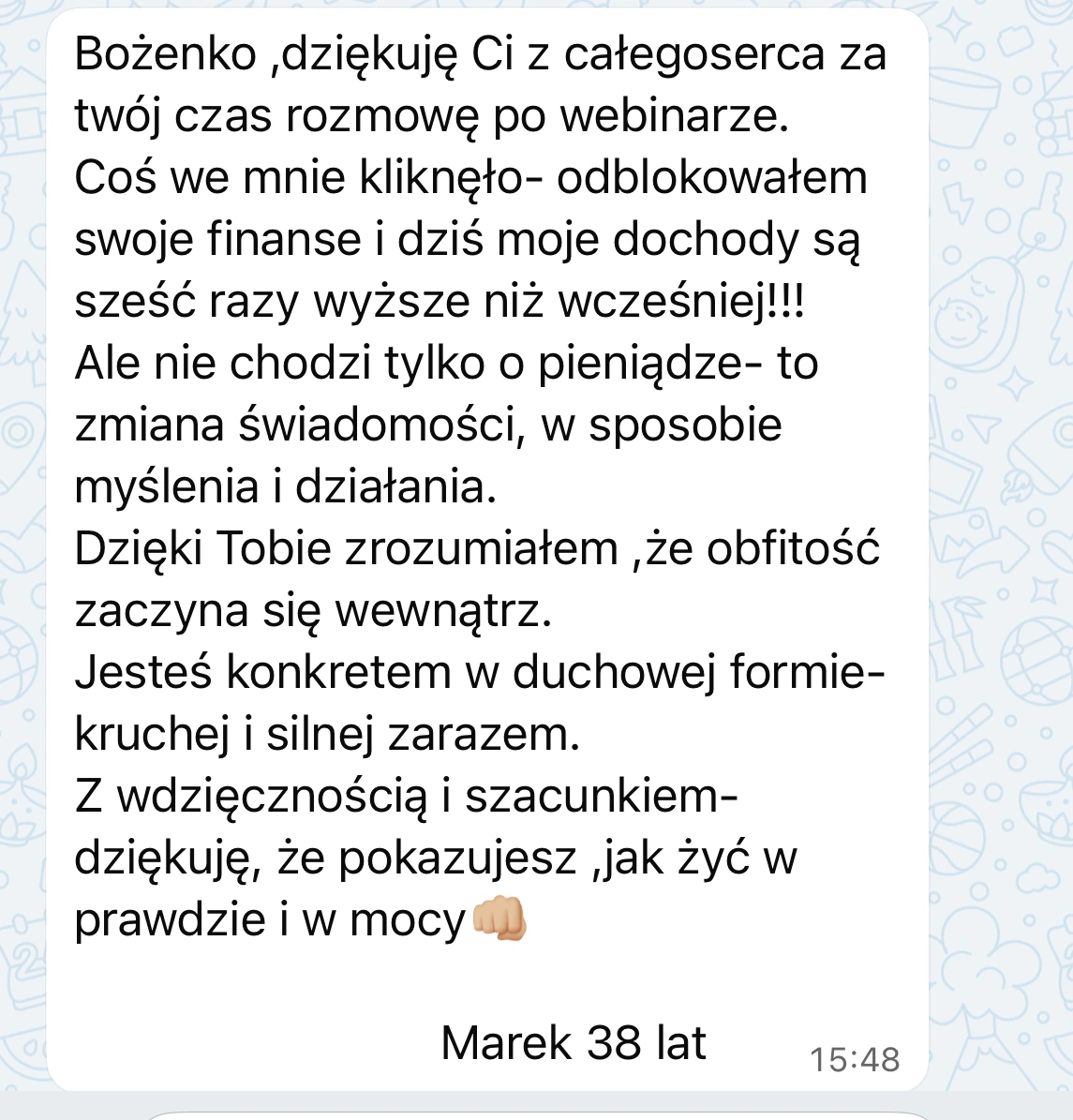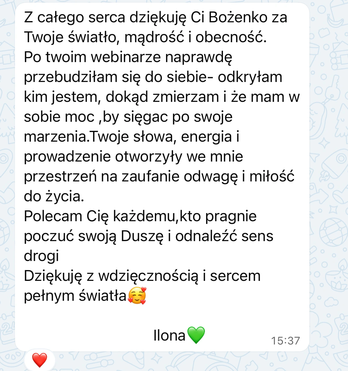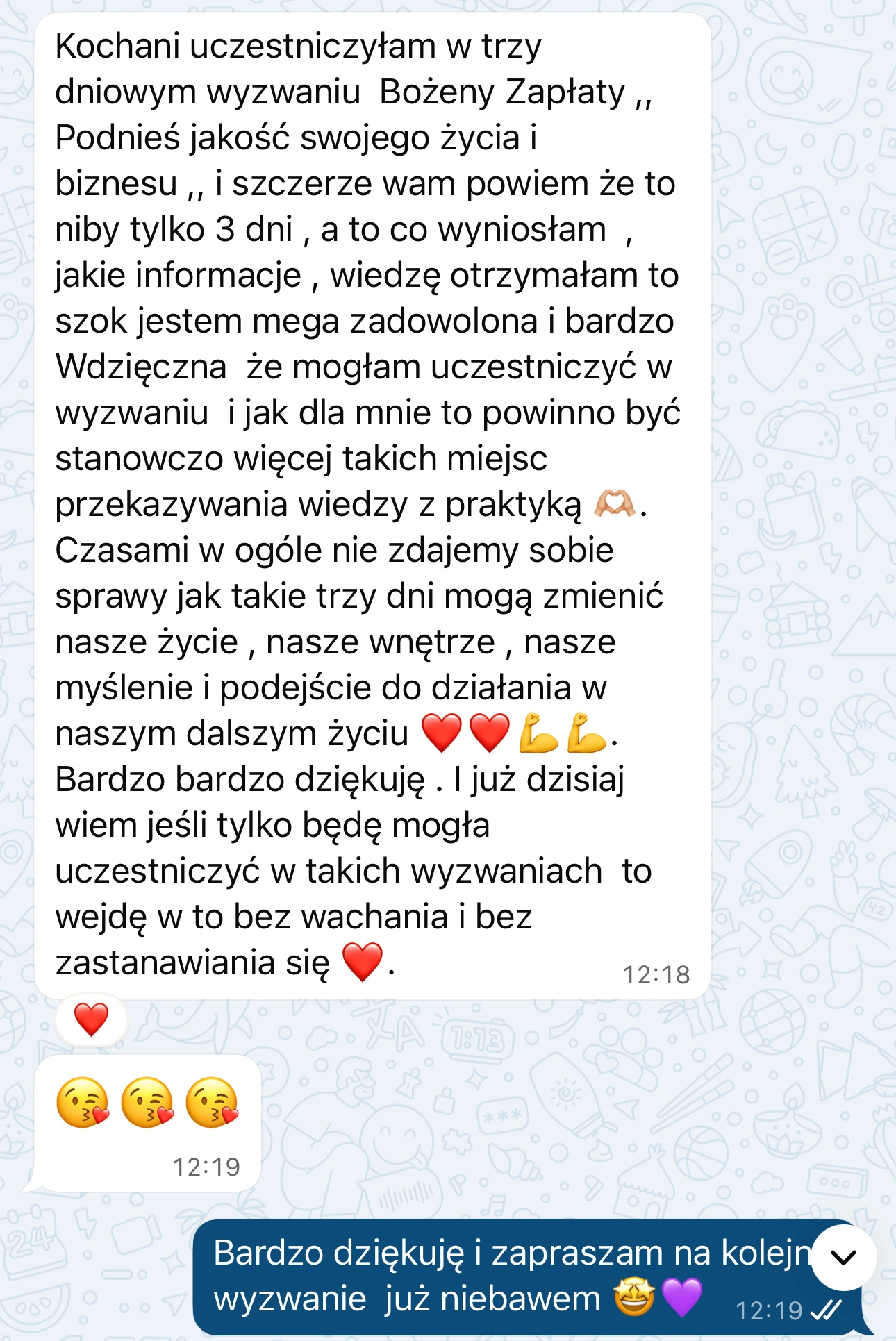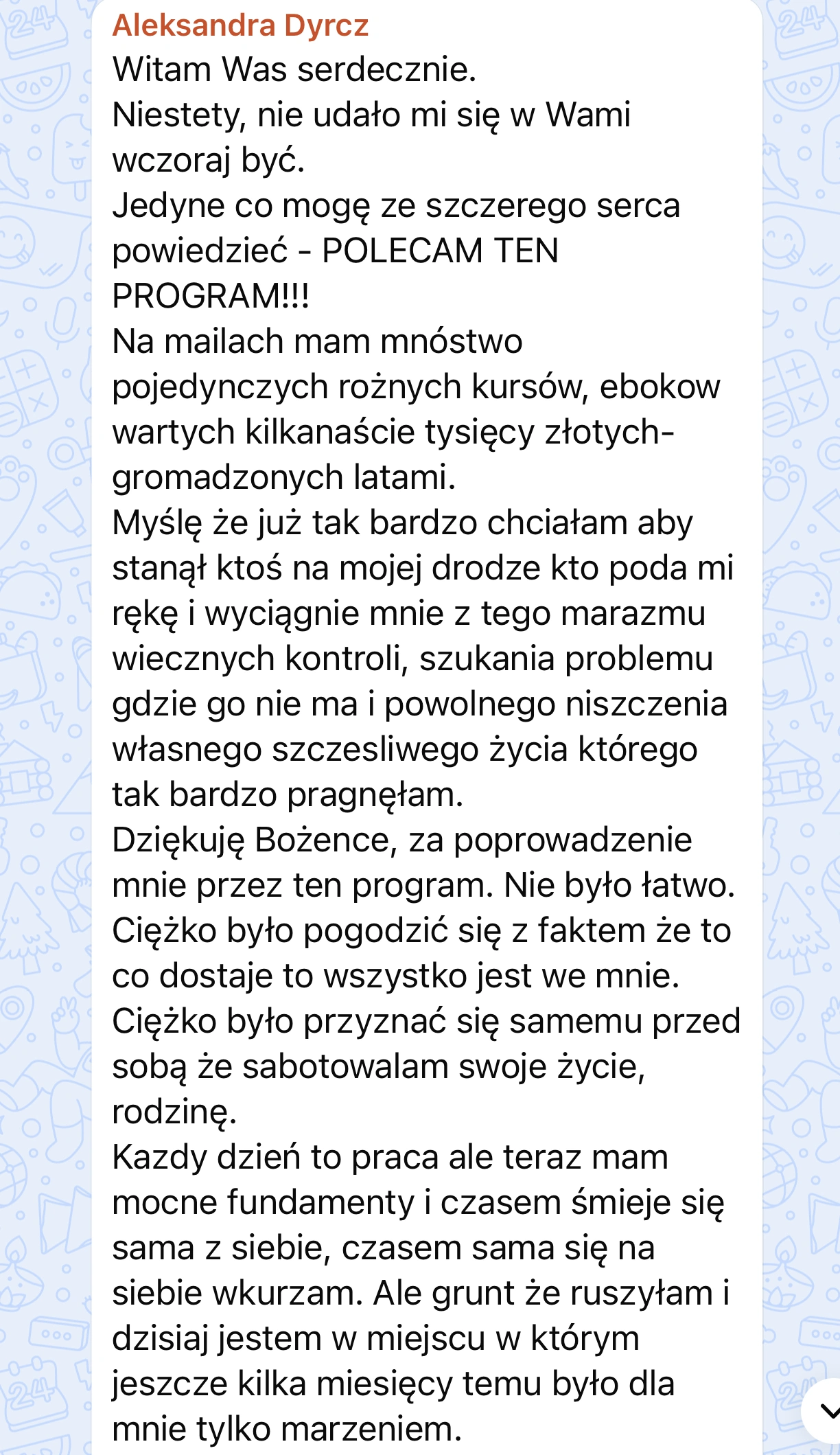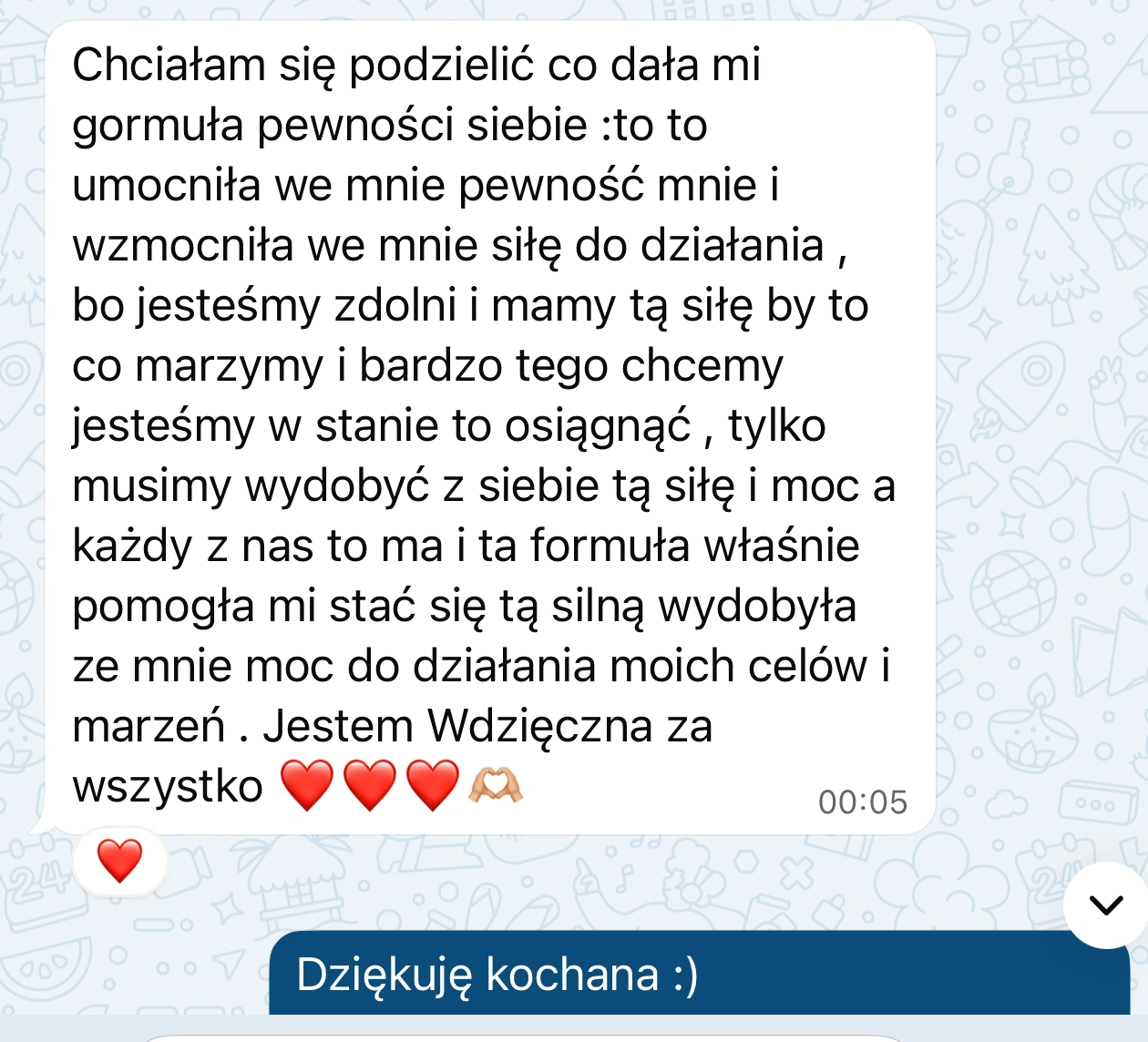 Napisz na czacie whatsapp co blokuje twoje działania, jaki odczuwasz lęk przed zrobieniem pierwszego kroku – czat otwarty będzie 21:30-10:00 rano.